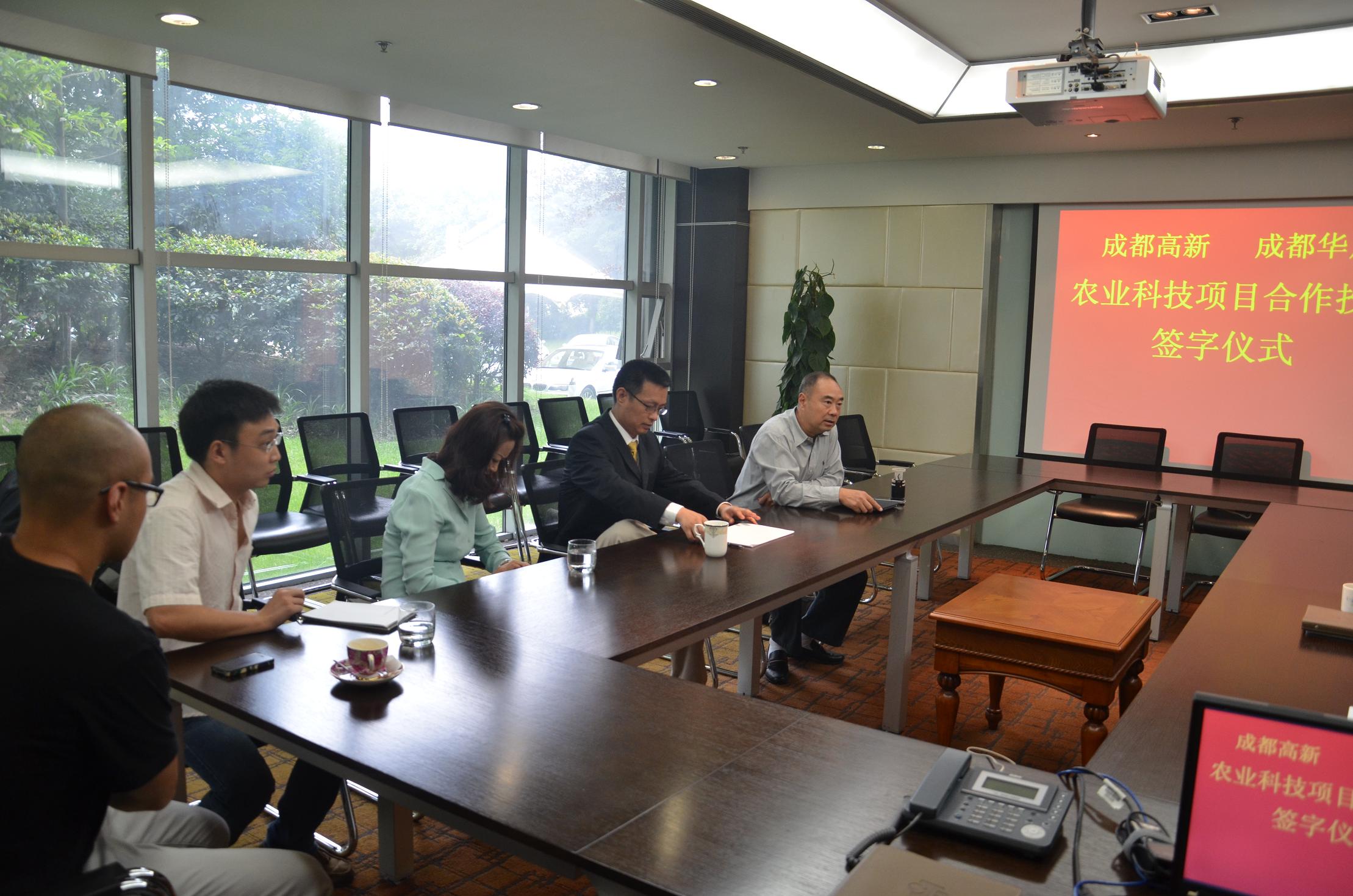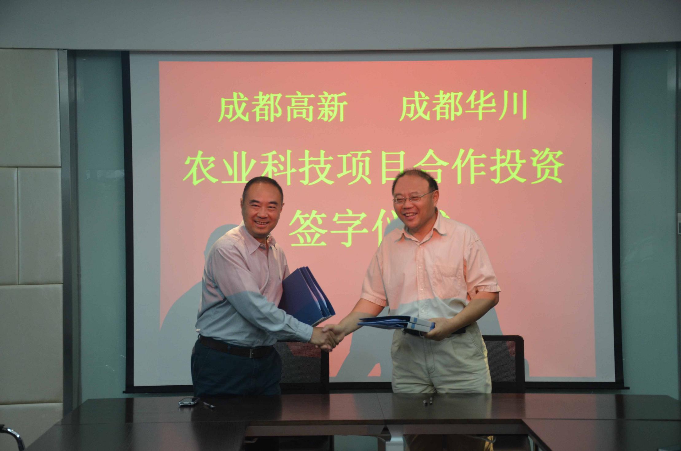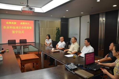 2012年6月18日上午, 我司举行农业科技项目合作投资签字仪式, 我司陆恺总经理与成都高新实业有限公司总经理方志在合作协议上正式签字,双方出资成立成都华川高新农业科技有限公司。